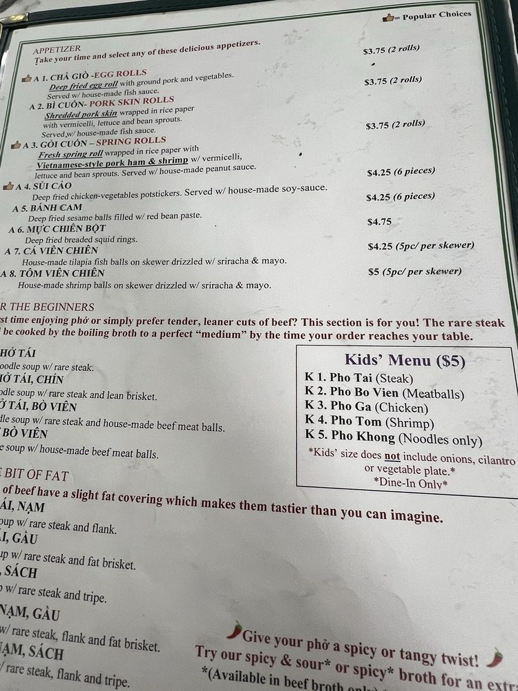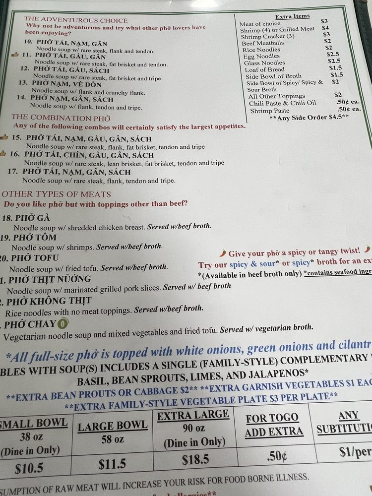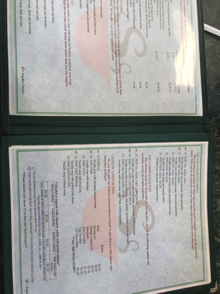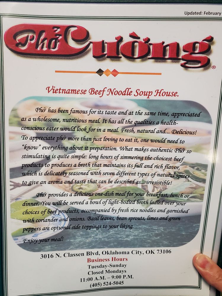 Pho Cuong Restaurant Menu